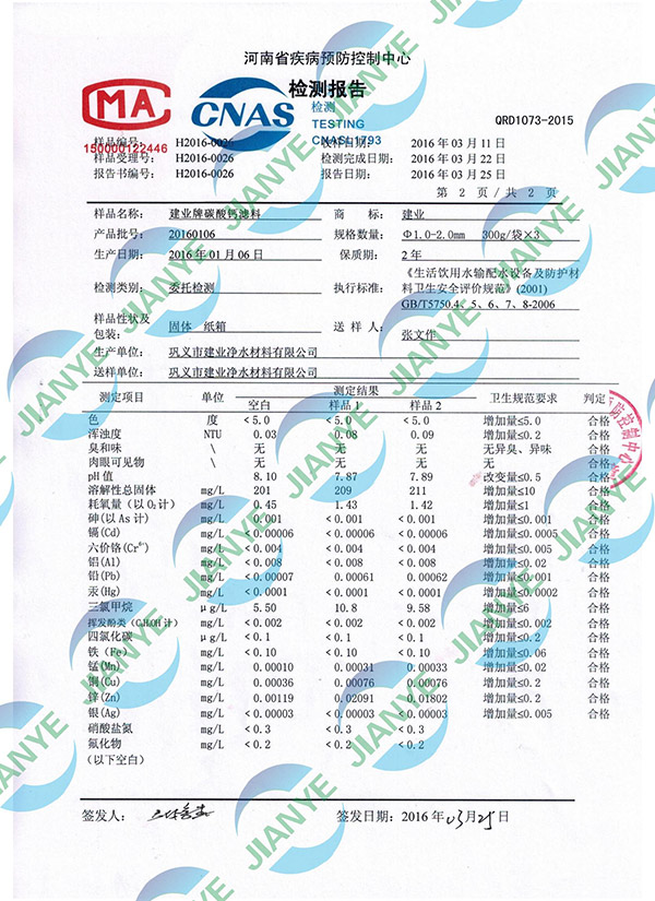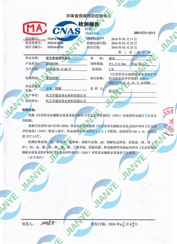 碳酸鈣河南省防疫站檢測報告